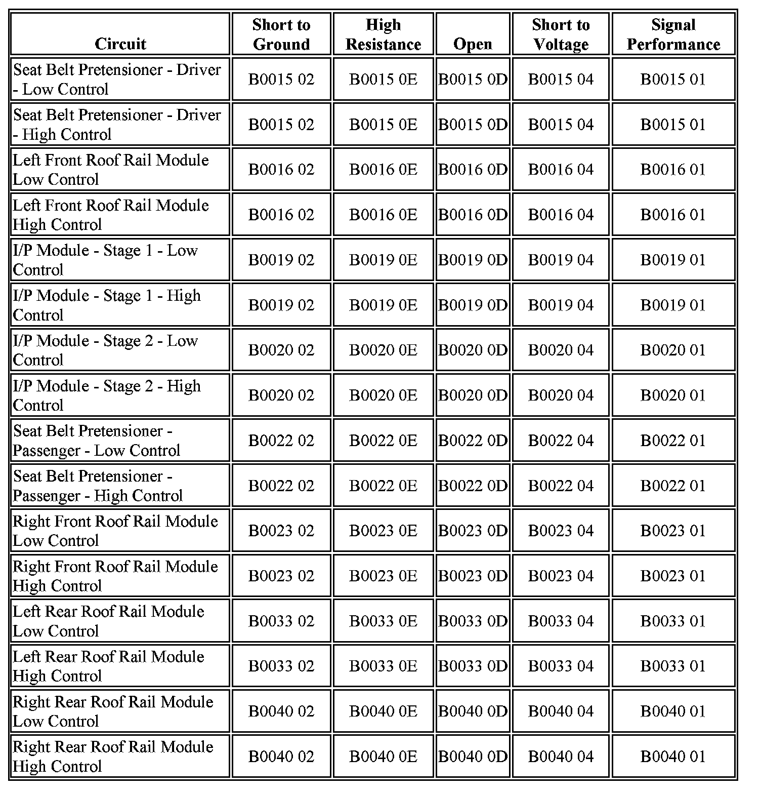 B0015 02: Driver Pretensioner Deployment Loop Short to Ground.
