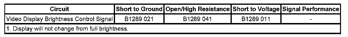 • If 100 to 300 Hz is not present on the video display brightness control signal circuit test for an open, a short to voltage, or a short to ground. If the video display brightness control signal circuit tests normal, replace the radio.