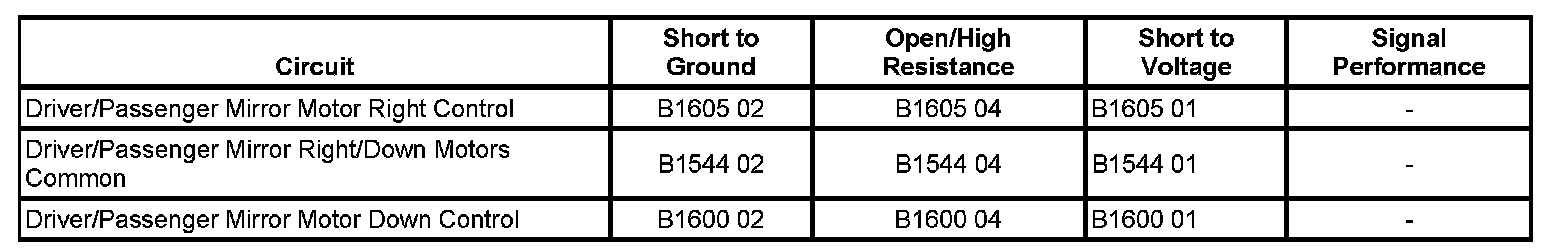 - Mirror Motor Horizontal Circuit Short to Battery