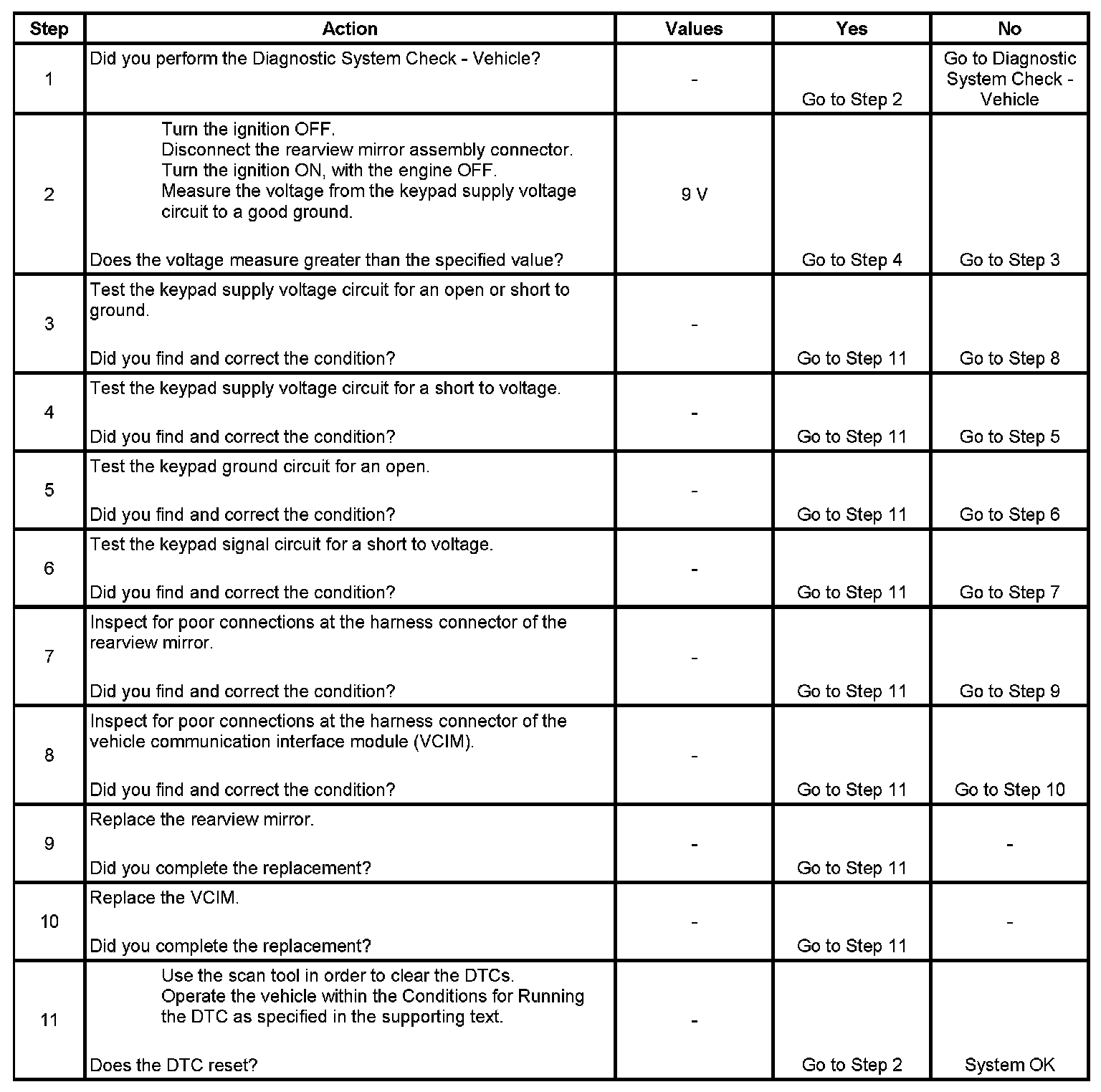 * The VCIM powers the button assembly through the keypad supply voltage circuit for 11.5 milliseconds, turns the power off, then waits for 50 milliseconds and sees a voltage value greater than 1.8 volts on this circuit.