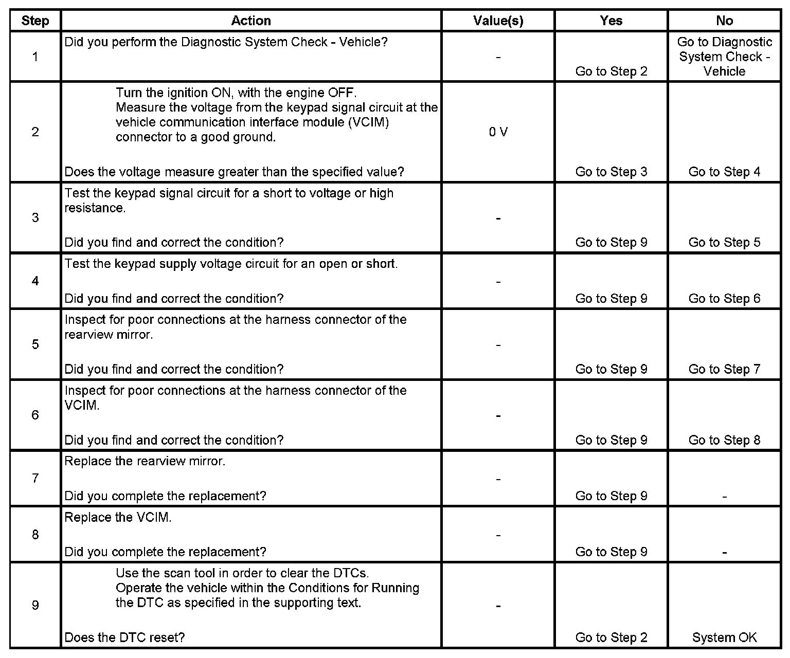 2. This step tests the at rest state of the keypad signal circuit.