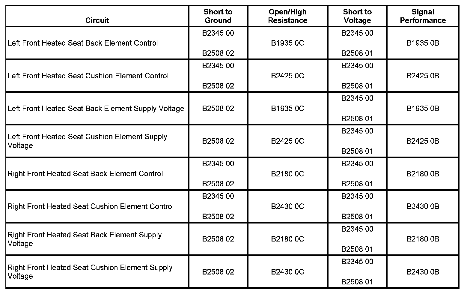 - Seat Heater Relay Circuit Shorted to Battery or Open