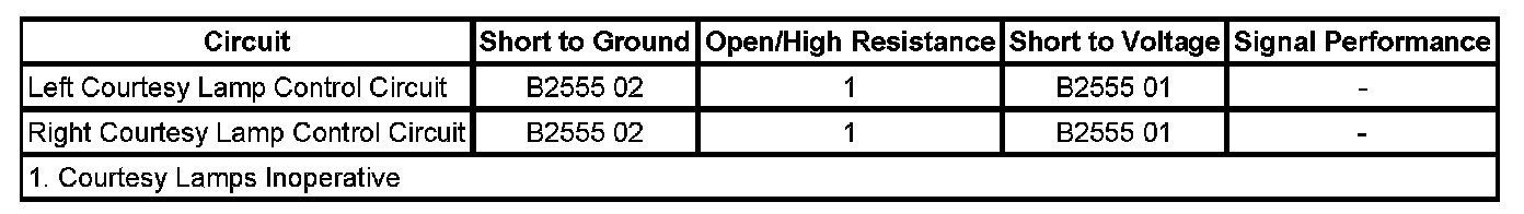 When this DTC is present, the door courtesy lamps will be inoperative.