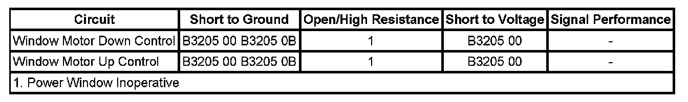 The DDS or PDS detects a short to ground or short to voltage on a window motor control circuit.