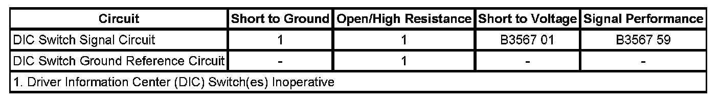 - Driver Information Center (DIC) Select Switch Circuit Short To Battery