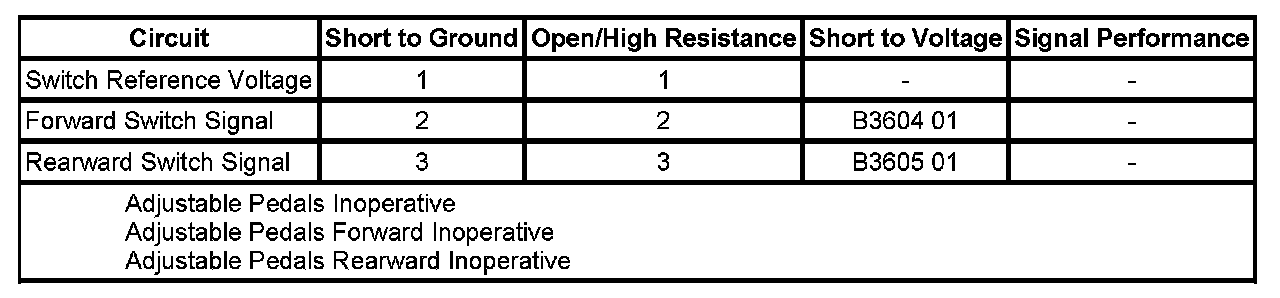 - Adjustable Foot Pedal Rearward Switch Circuit Short to Battery