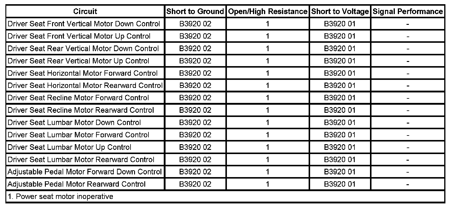 - Group 1 Seat Motors Circuit Shorted to Ground
