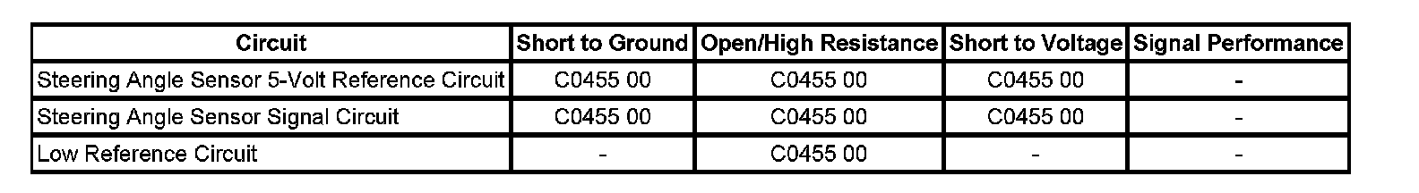 The steering angle sensor supplies input circuits to the electronic brake control module (EBCM) from the Phase A and Phase B, the Index Pulse Phase C circuits, and 1 Analog signal circuit for steering wheel angle. The analog signal is used along with the index pulse to calibrate the steering angle sensor (SAS). The SAS position is then determined by Phase A and Phase B signals. The 2 input signals Phase A and Phase B are approximately 90 degrees out of phase. Once calibrated, the EBCM dynamically interprets the relationship between the Phase A and Phase B inputs, and determines the position of the steering wheel and the direction of the steering wheel rotation.