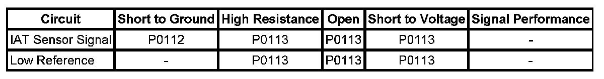 - Intake Air Temperature (IAT) Sensor Circuit Low Voltage