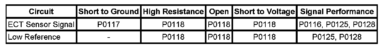 - Engine Coolant Temperature (ECT) Sensor Circuit Low Voltage