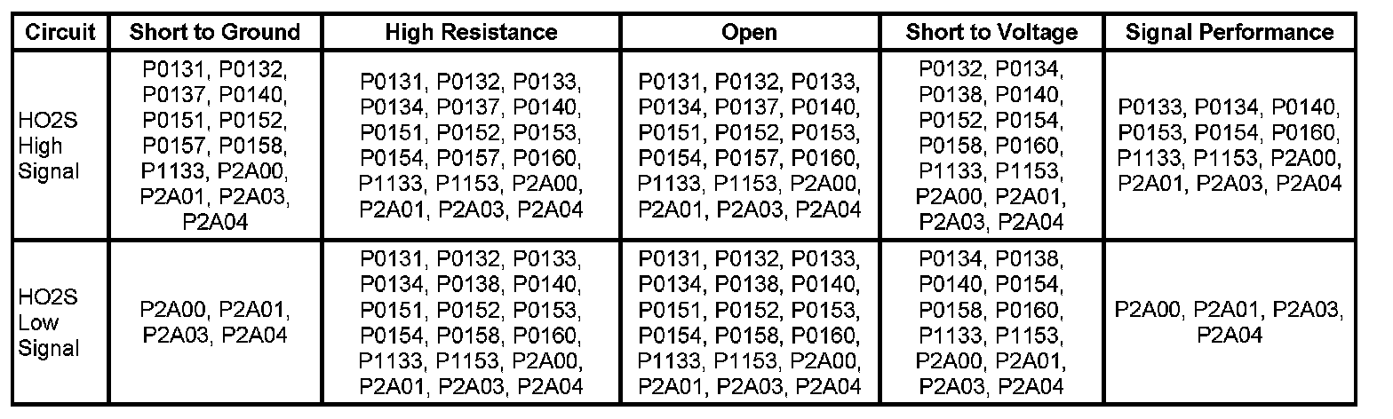 DTC P0131, P0132, P0137, or P0138