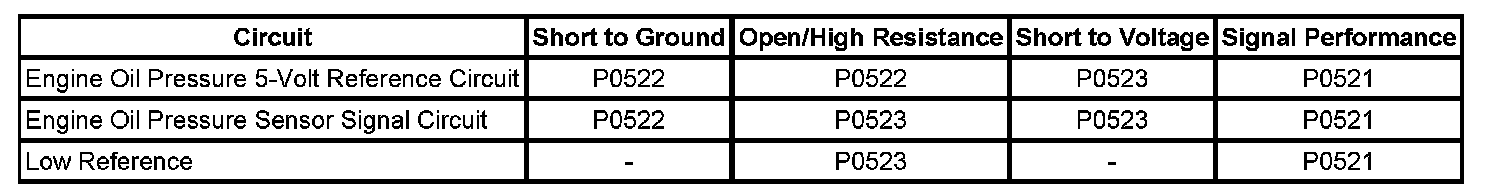 - Engine Oil Pressure (EOP) Sensor Circuit High Voltage