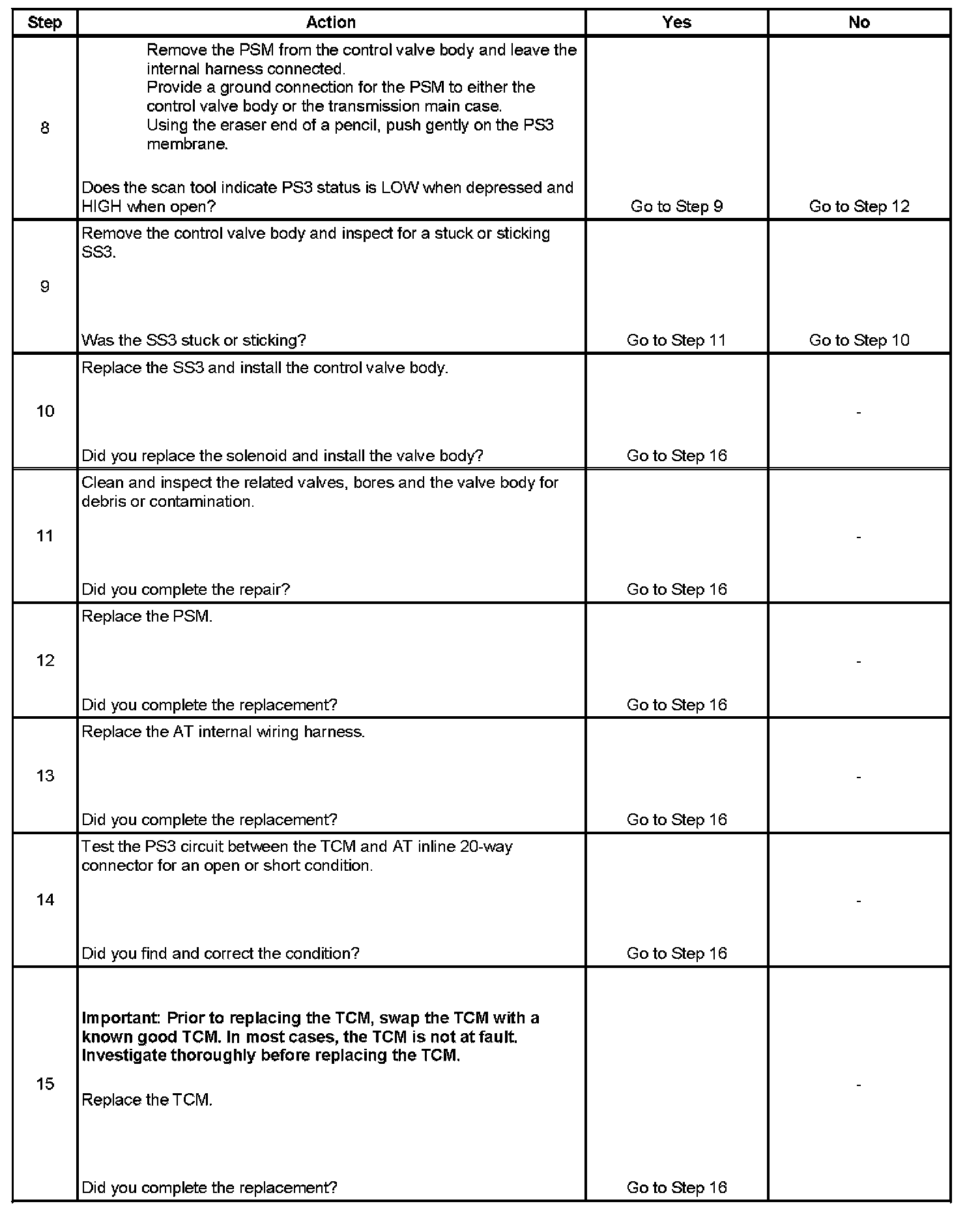 * This DTC may indicate that SS3 is mechanically defective or the shift valve is stuck in the destroked state.