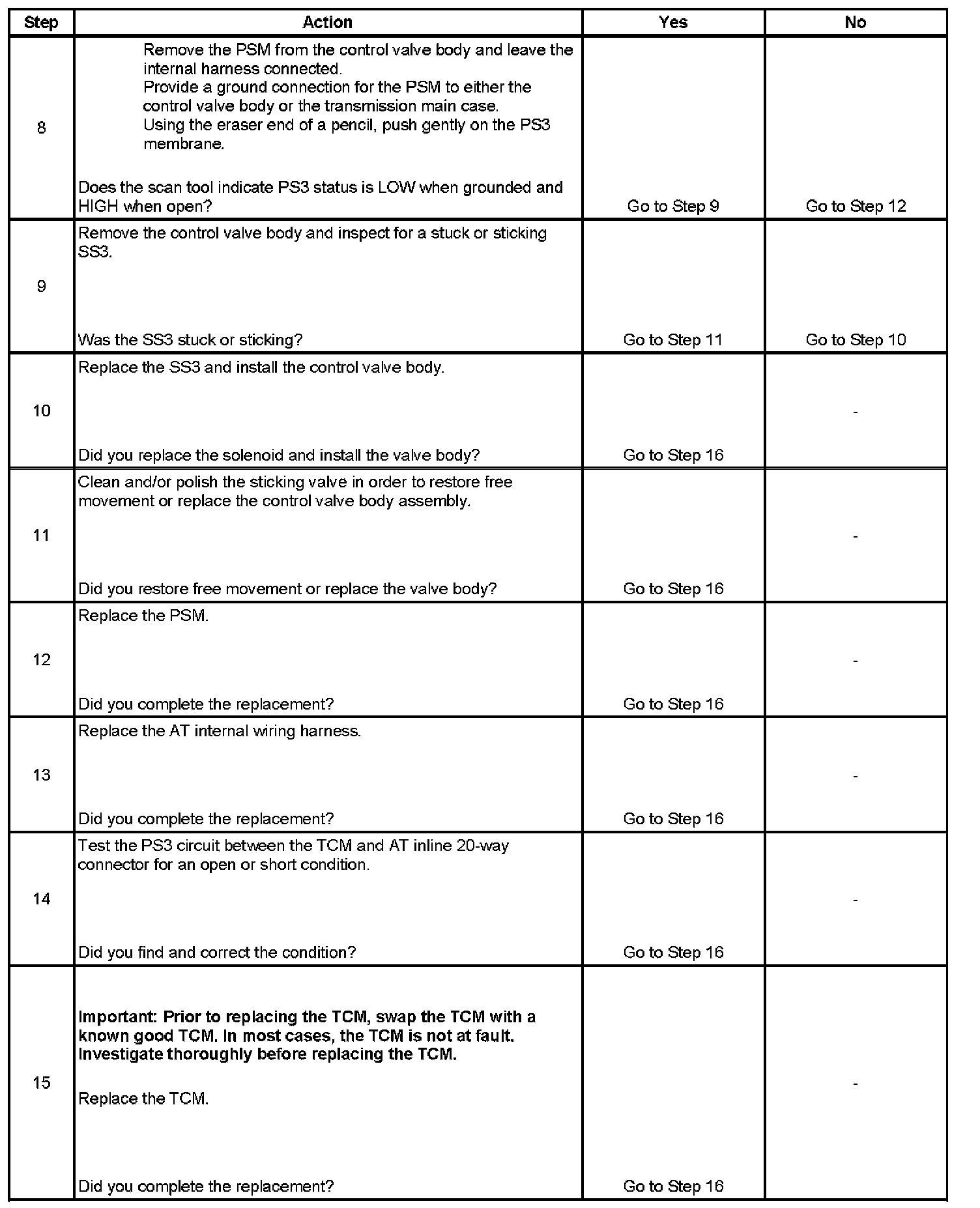 6. This step tests the transmission wiring harness integrity.