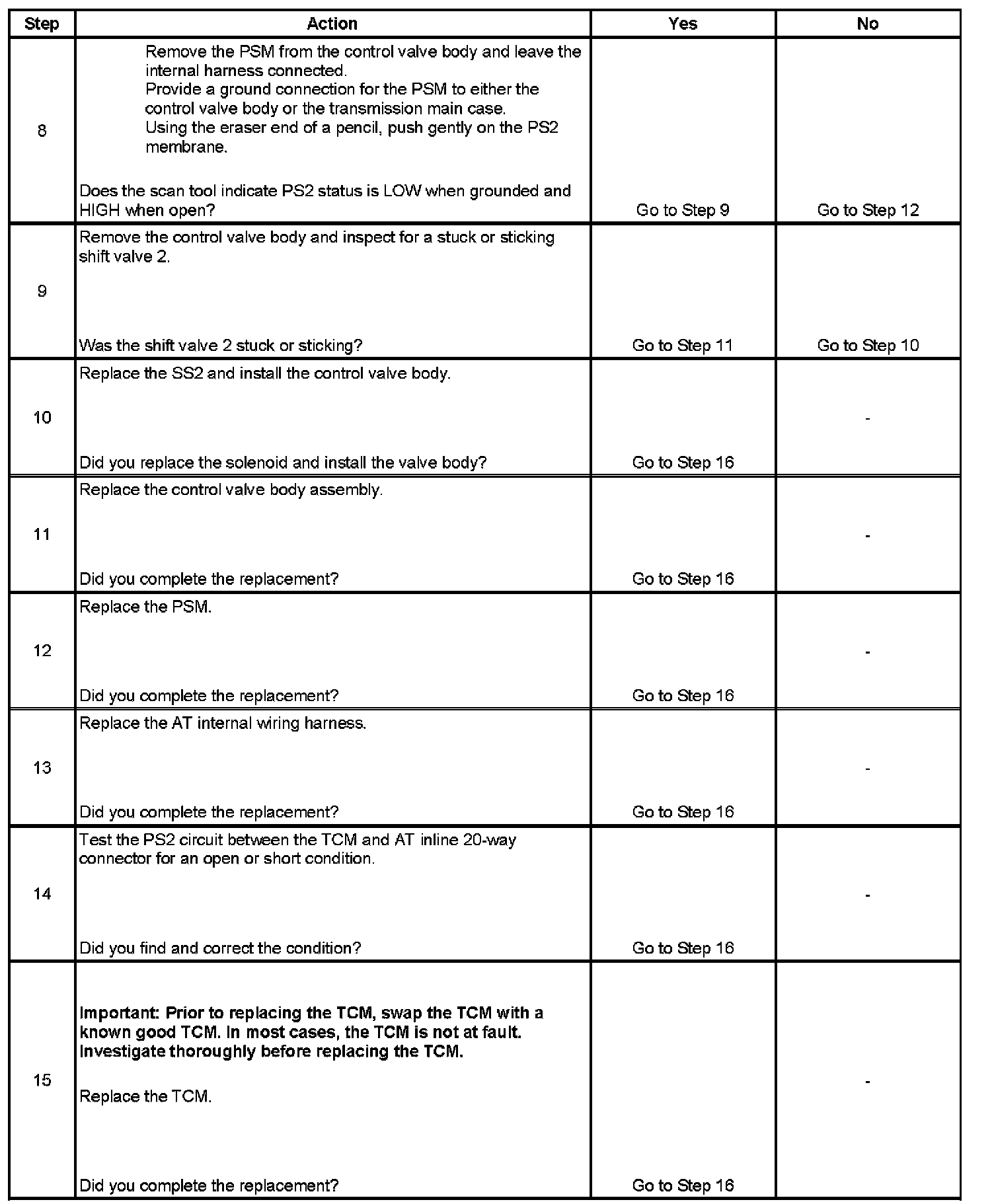 * When DTC P0756 and P0848 are set in combination, this may indicate an open circuit is present at the pressure switch circuit or the shift valve is stuck in the destroked position.