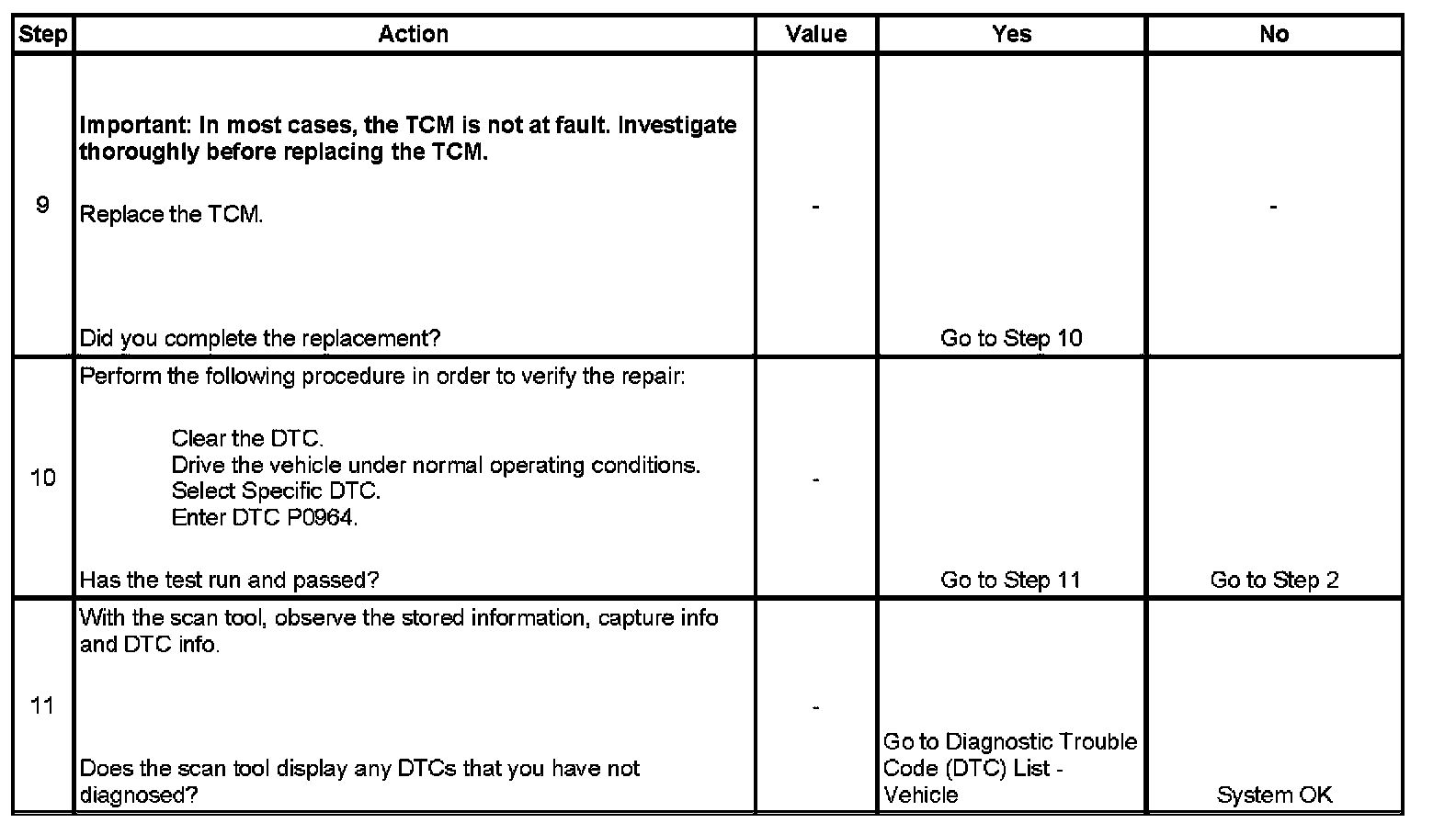 * DTC P0964 is stored in TCM history.
