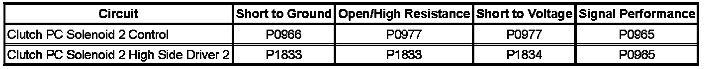 - Clutch Pressure Control (PC) Solenoid 2 Control Circuit Low Voltage