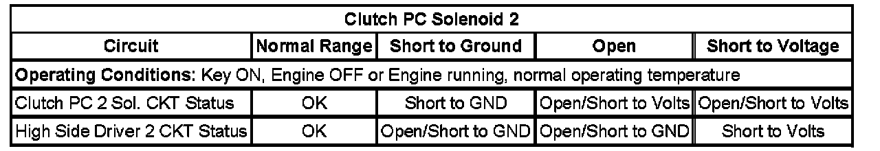 - Clutch Pressure Control (PC) Solenoid 2 System Performance