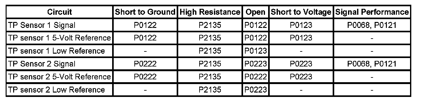 P0120, P0122, P0123, P0220, P0222, and P0223