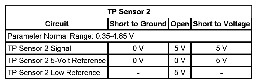 - Throttle Position (TP) Sensor 2 Circuit Low Voltage