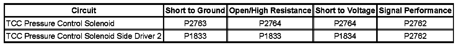 - Torque Converter Clutch (TCC) Pressure Control Solenoid Control Circuit Low Voltage
