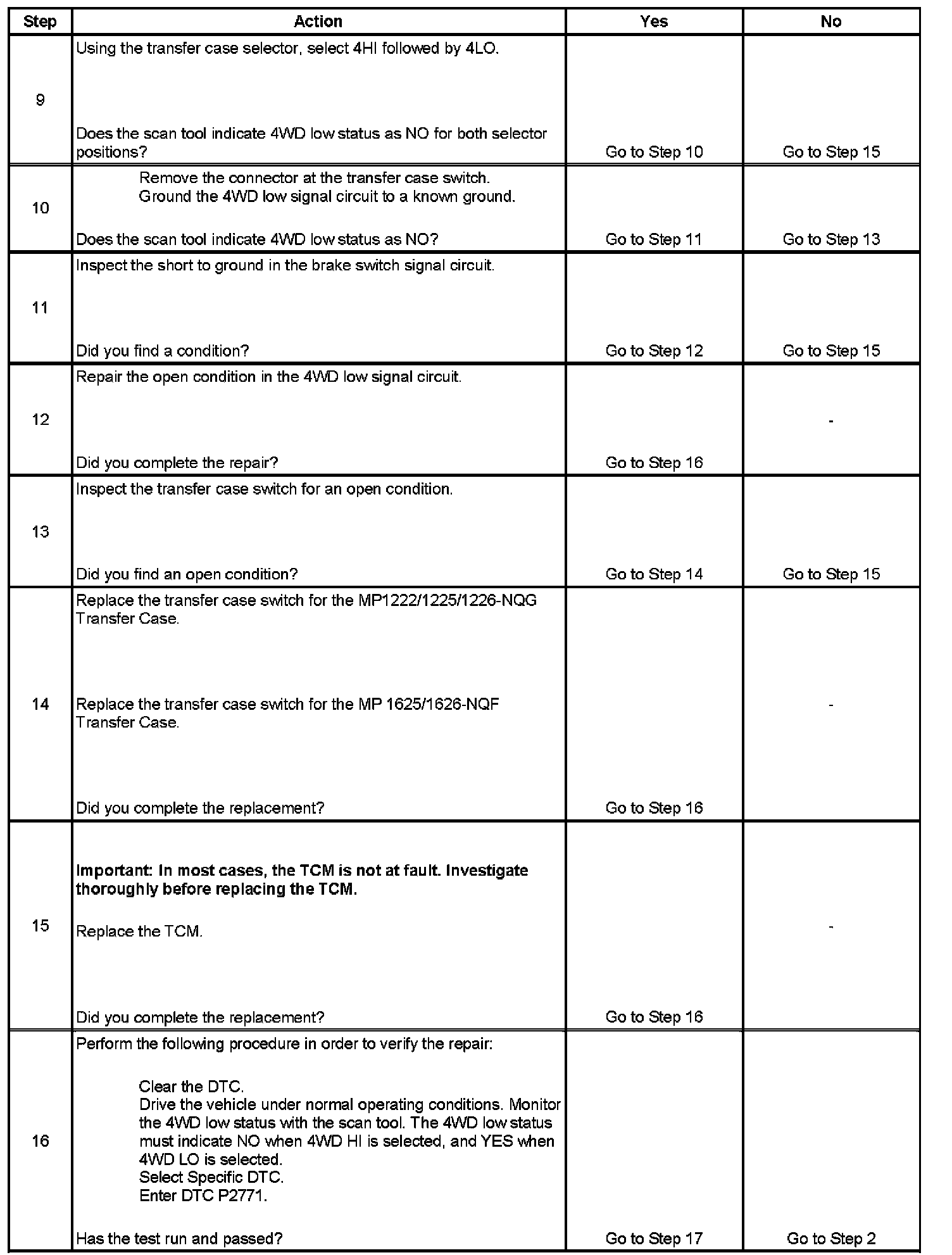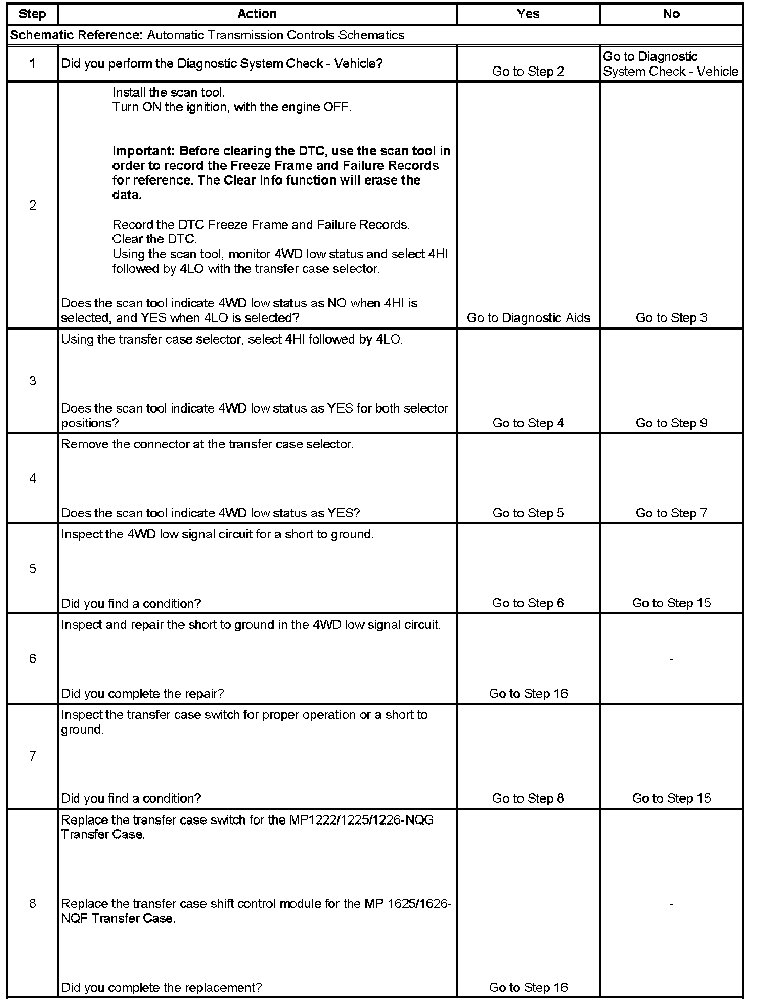 * The transfer case switch indicates high range, and the calculated range is low range for 5 seconds or greater.