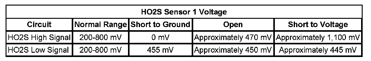 * The control module detects that the sensor did not transition below 200 mV and above 730 mV during the passive test.