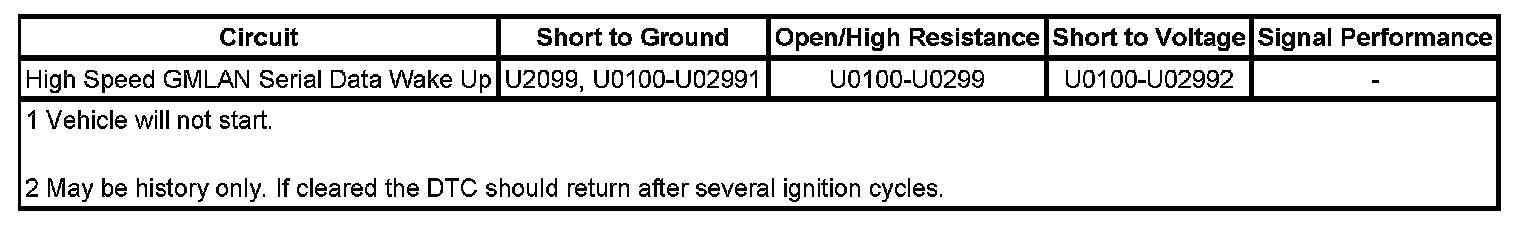 * Short to ground will also set multiple history no communication codes for GMLAN high speed modules