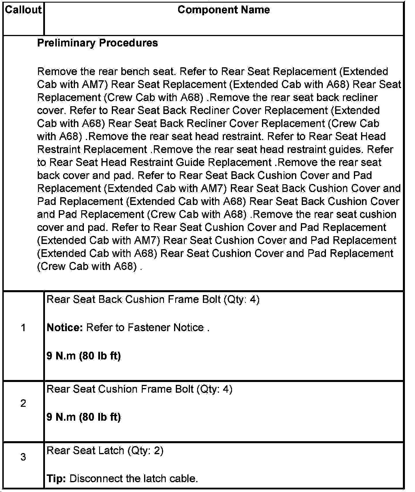 Rear Seat Latch Replacement (Extended Cab with AM7)