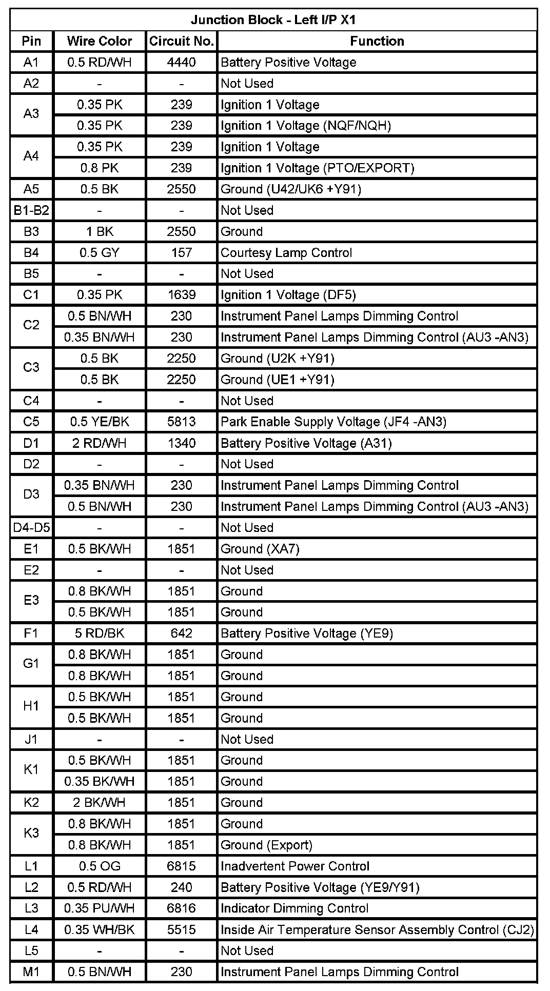 Junction Block - Left I/P X1 (Pin A1 To M1):