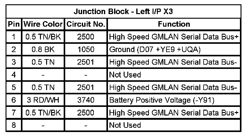Junction Block - Left I/P X2 (Pin E3 To P5):