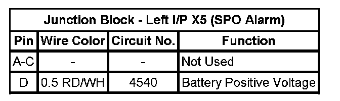 Junction Block - Left I/P X5 (SPO Alarm)
