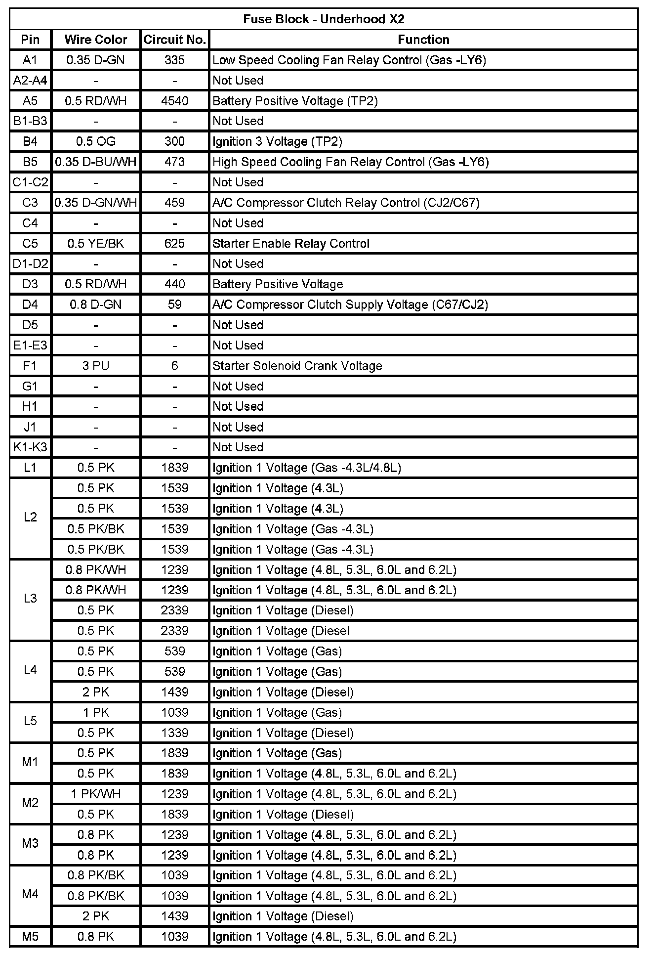 Fuse Block - Underhood X2 (Pin A1 To M5):