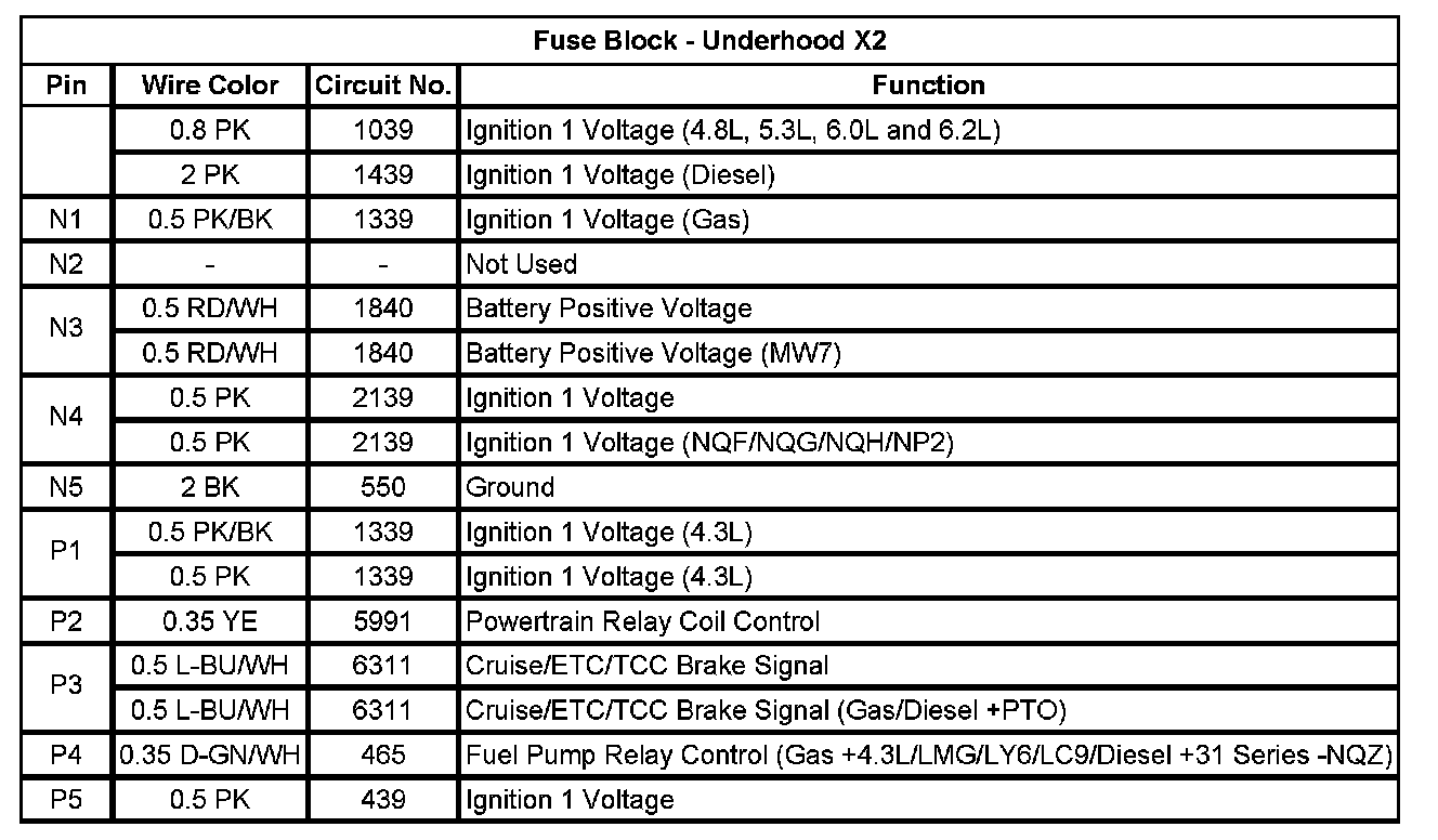 Fuse Block - Underhood X2 (Pin N1 To P5):