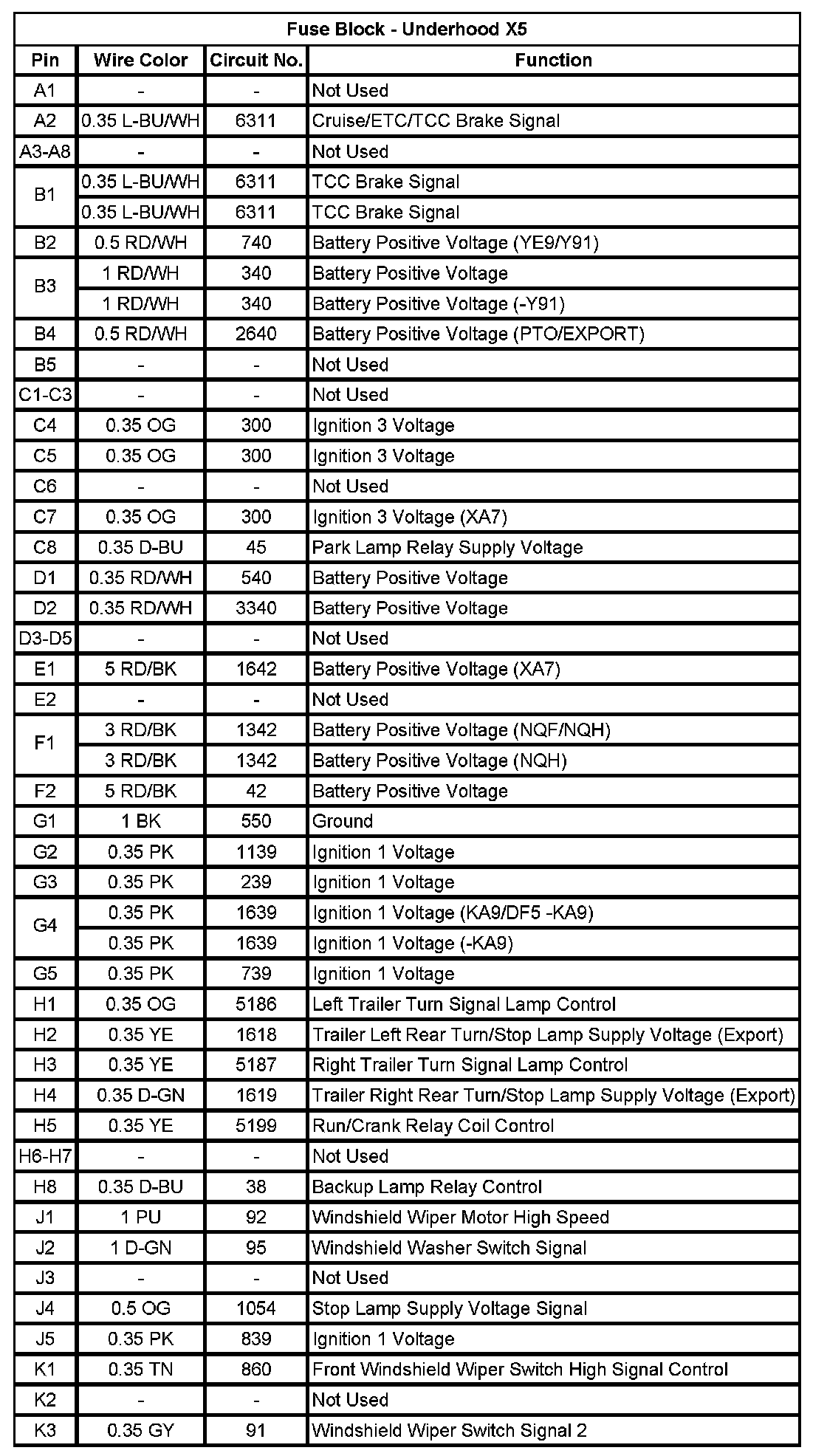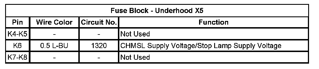 Fuse Block - Underhood X5 (Pin K4 To K8):