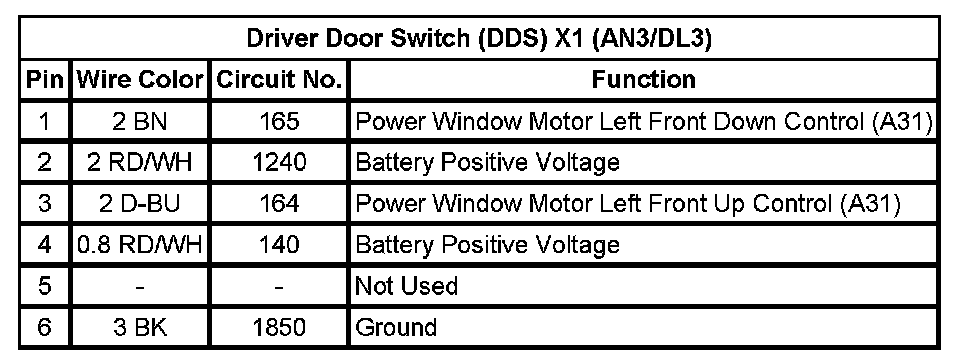 Driver Door Switch (DDS) X1 (AN3/DL3)