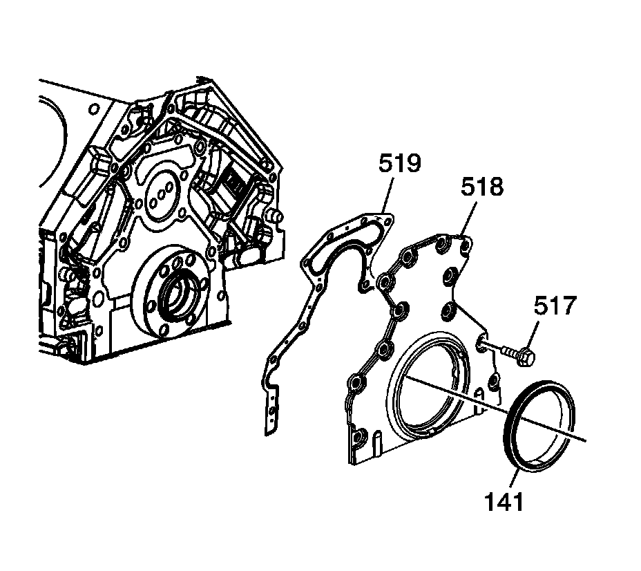 2. Position a NEW rear oil seal housing gasket (519) and the housing (518) to the engine.