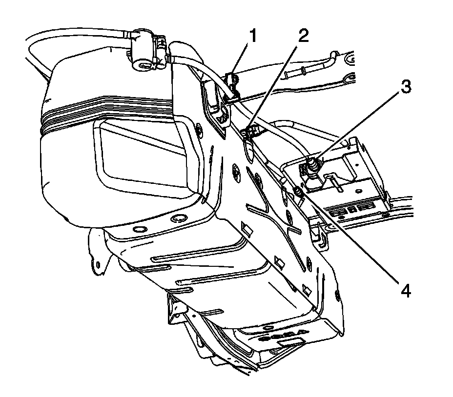 4. Disconnect the EVAP canister pipe quick connect fitting (4) from the fuel tank EVAP pipe.