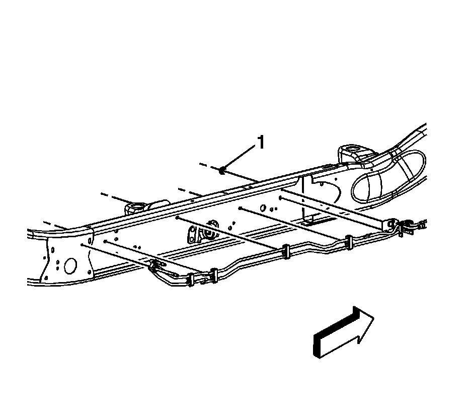 10. Remove the EVAP canister vent solenoid clip (1) from the chassis EVAP line and secure out of the way.