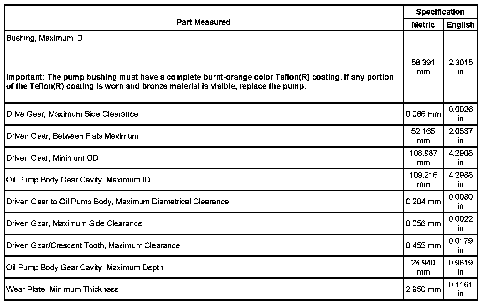 Oil Pump Specifications: