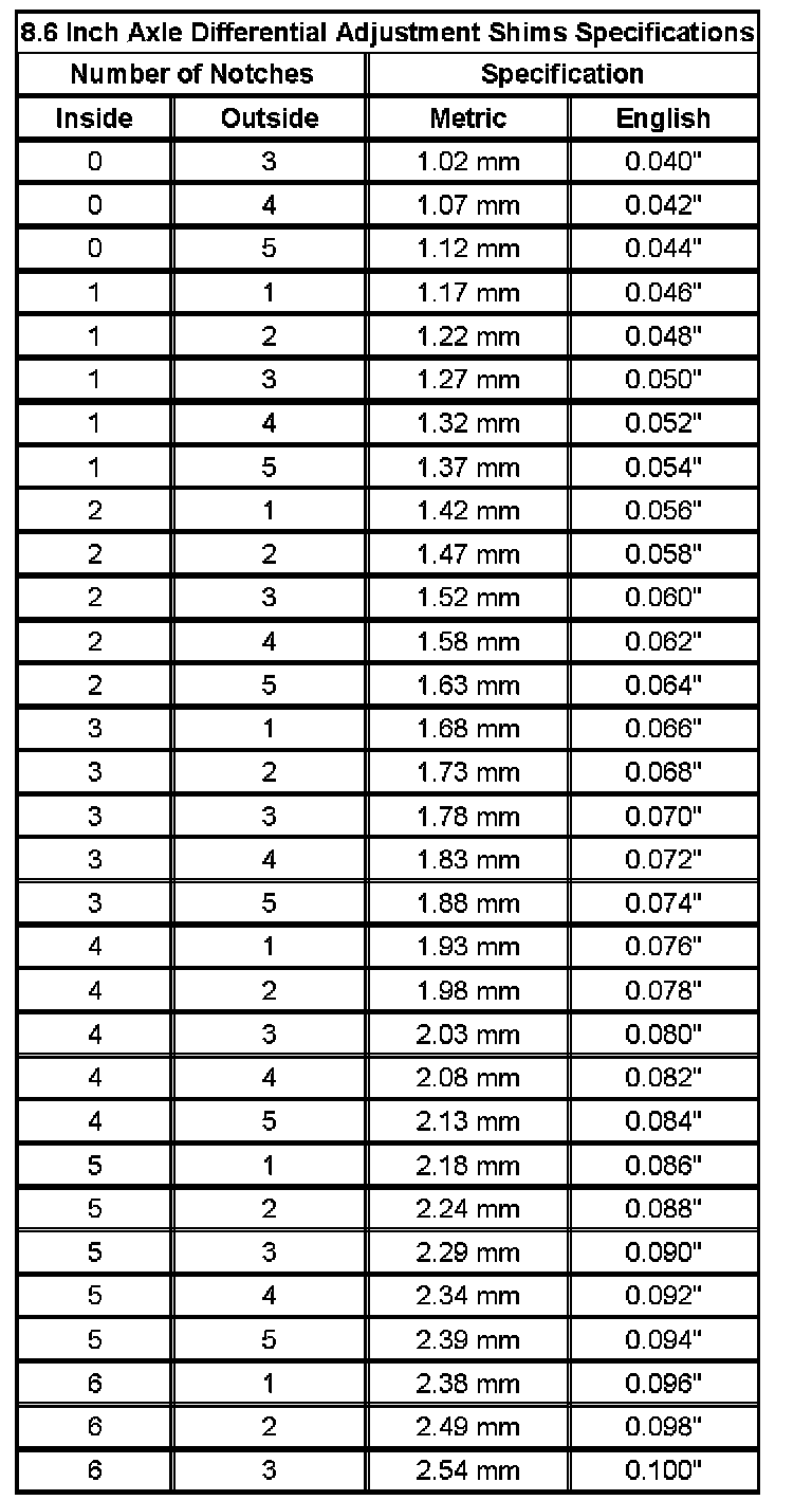 8.6 Inch Axle Differential Adjustment Shims Specifications: