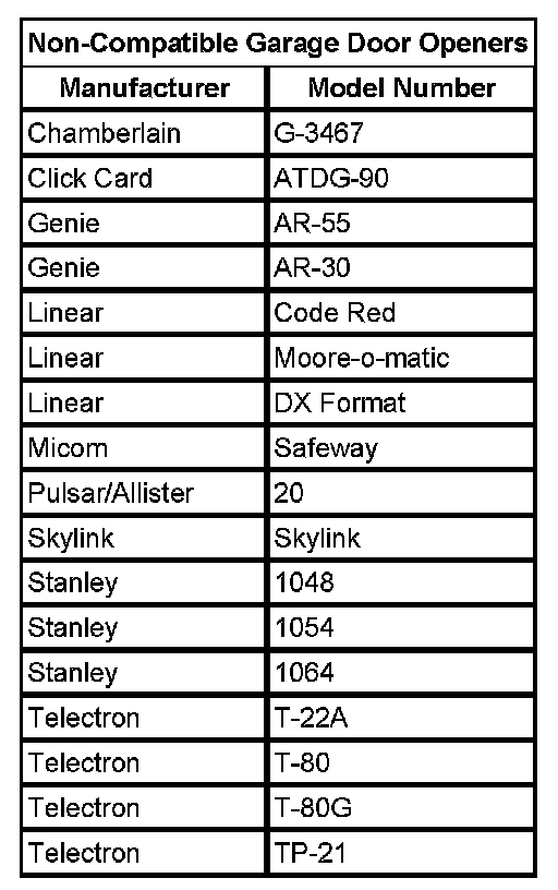 Important: Do not use the garage door opener (GDO) with any garage door opener that does not have the stop and reverse safety feature. This includes any garage door opener model manufactured before April 1, 1982.
