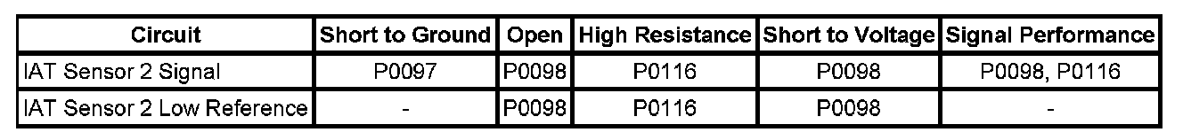 - Intake Air Temperature (IAT) Sensor 2 Circuit Low Voltage