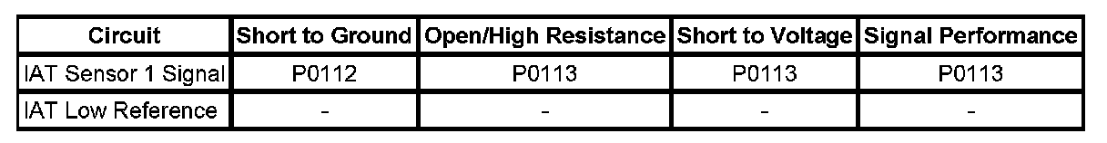 - Intake Air Temperature (IAT) Sensor Circuit Low Voltage