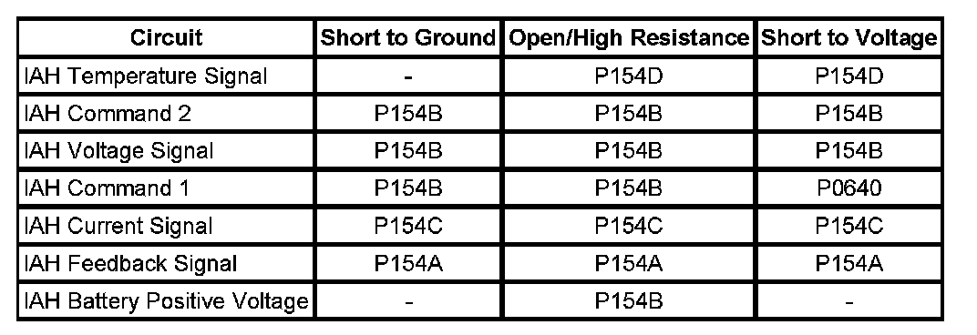 1. Test the IAH feedback signal circuit for an open, a short to ground, or a short to voltage.
