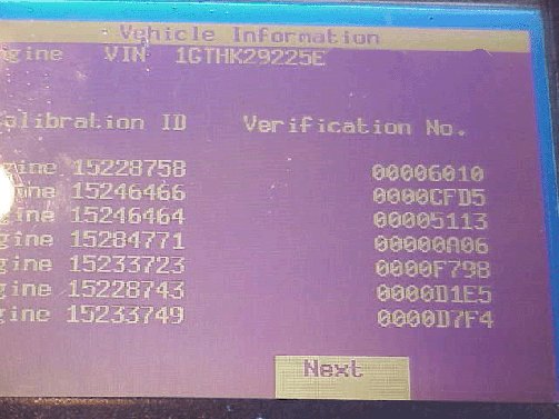 Subject: Information for Identifying Non-GM ECM Calibration Use and Power-Up Hardware Detection in Duramax(TM) Diesel Engines Photograph Tech 2(R) Calibration IDs, Calibration Verification Numbers (CVNs) and Transmission Data Screen