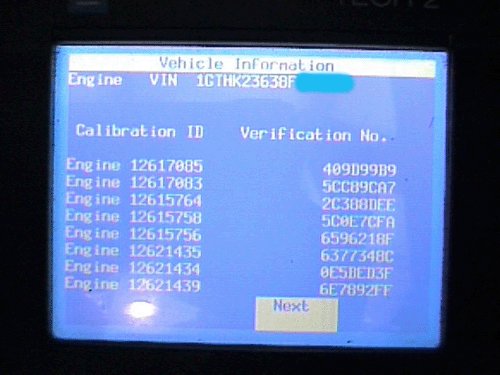 18. Take clear digital picture(s) of the Tech 2(R) Vehicle Information screen(s) showing the complete VIN, the Calibration IDs and the Verification Numbers. Retain the printout information and the Tech 2(R) screen photographs with the repair order.