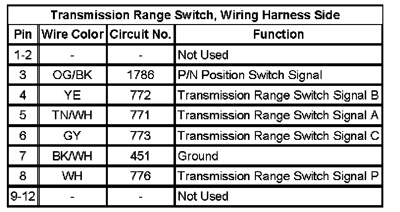 Transmission Position Sensor/Switch: Diagrams