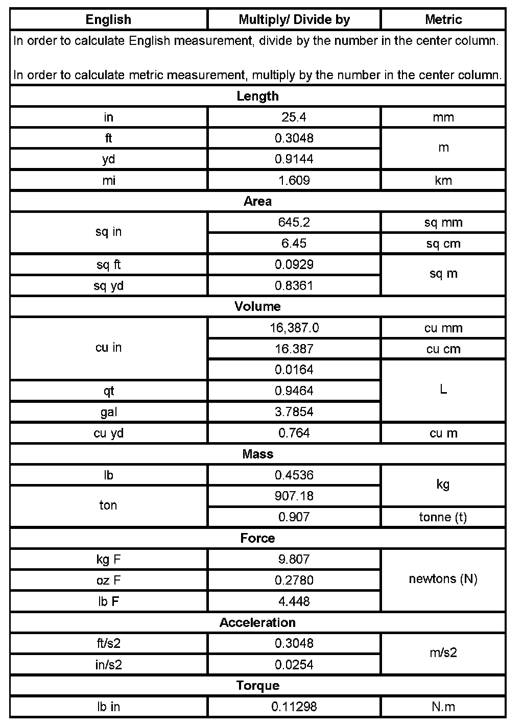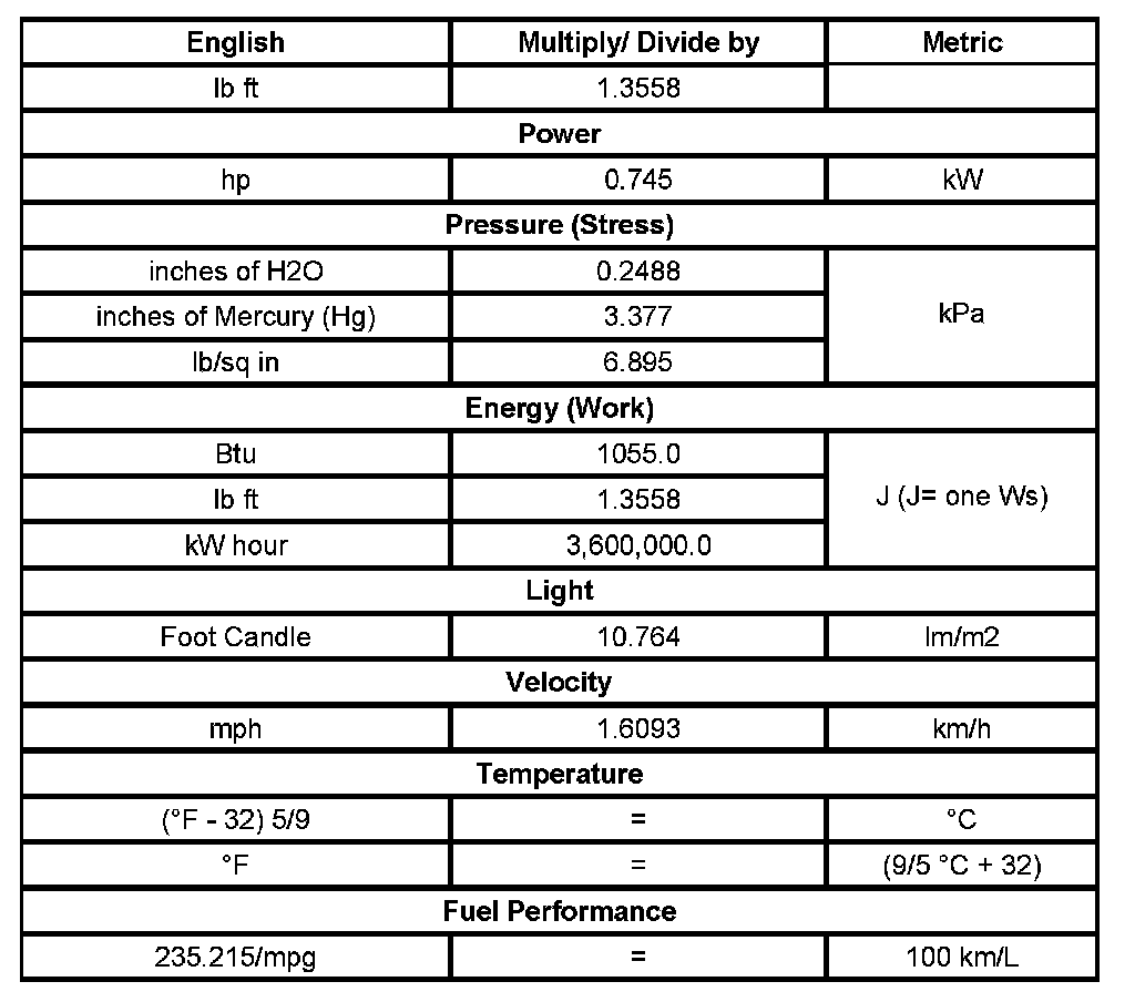 US English/Metric Conversion