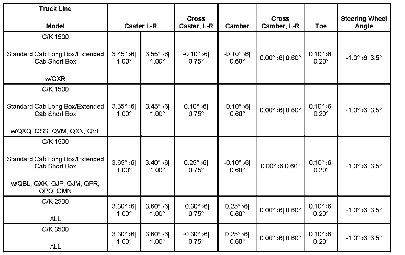 Wheel Alignment Specifications
